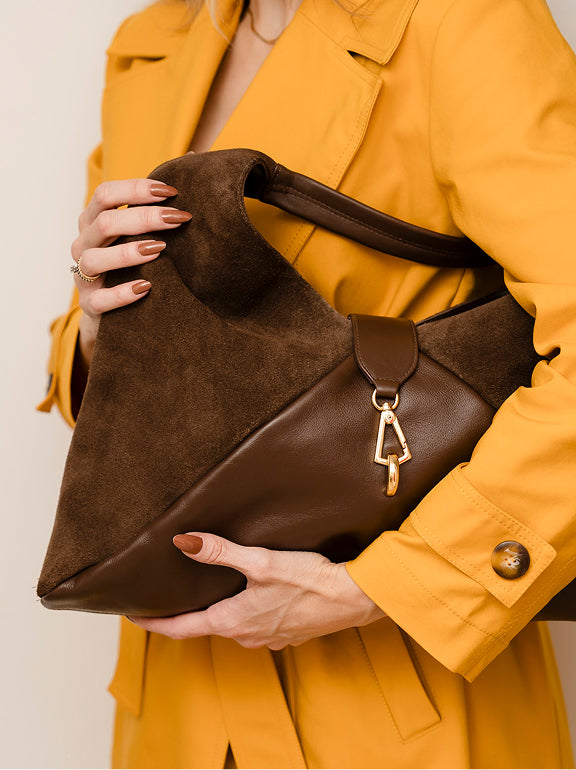 A Bolsa Carolina é uma bolsa de ombro de formato trapezoidal fluido, feita à mão, com caimento elegante e presença naturalmente sofisticada. Seu design amplo valoriza movimento e se adapta ao corpo com leveza, unindo estilo e conforto.