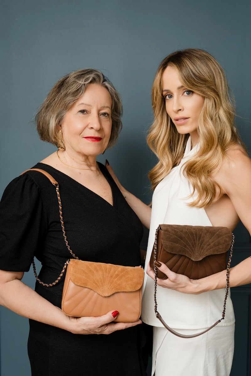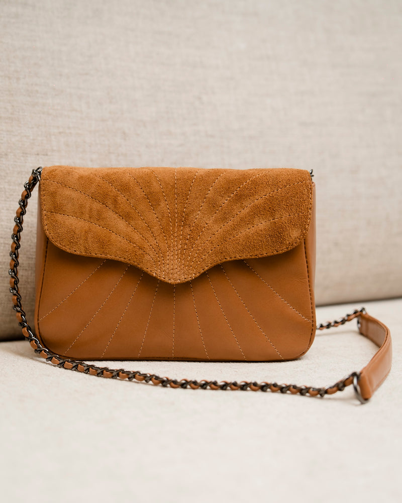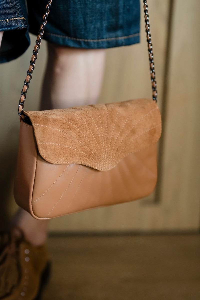 Bolsa Maíza Couro e Camurça na cor Caramelo