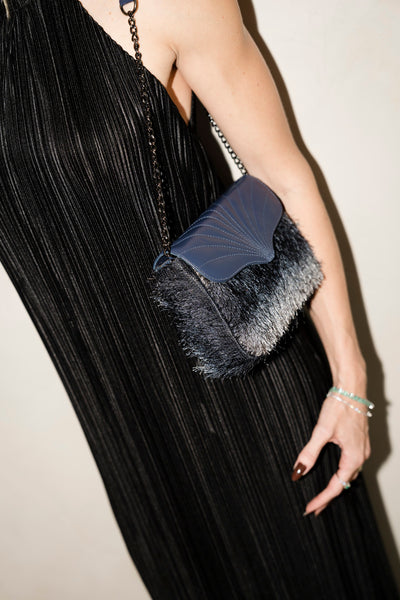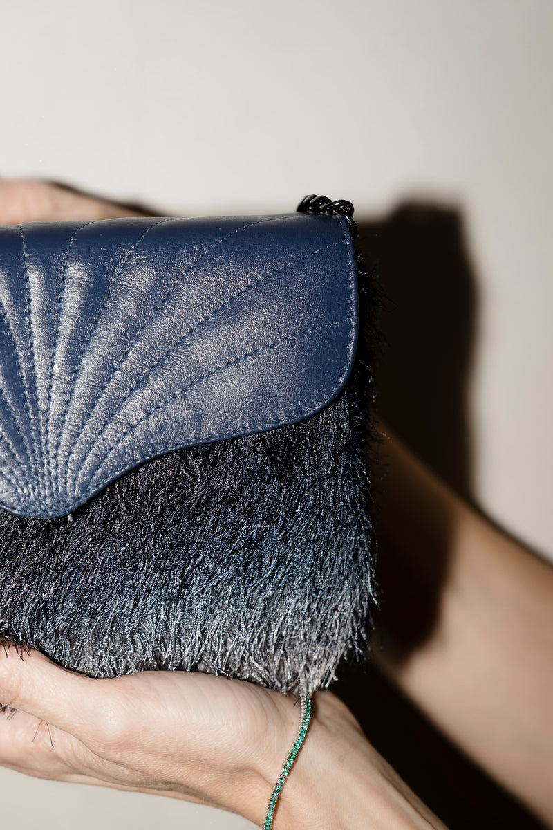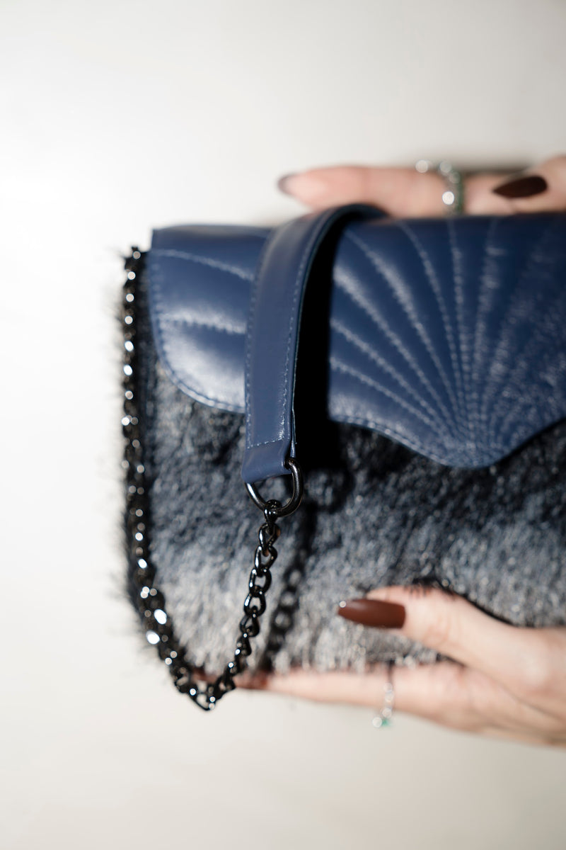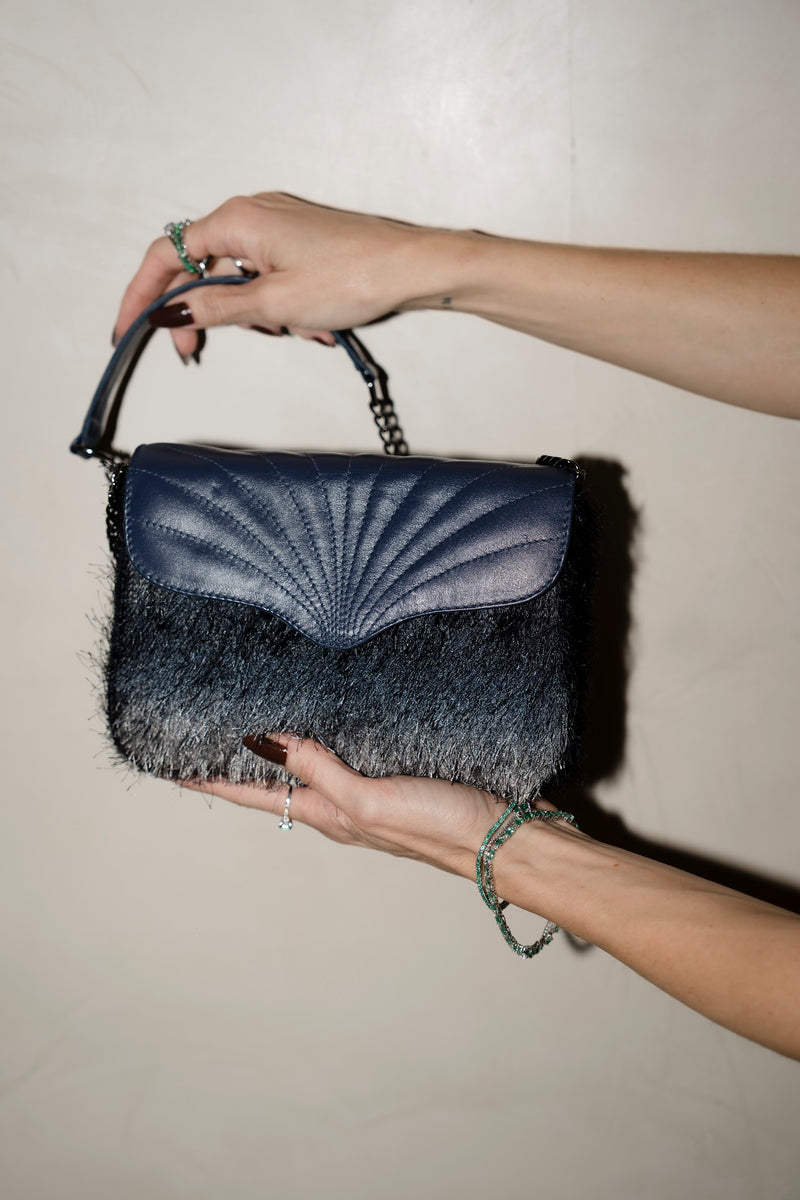 Bolsa Maíza Couro Marinho com Tecido de Efeito Peluciado