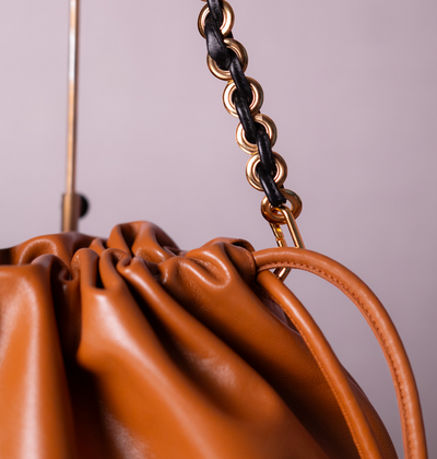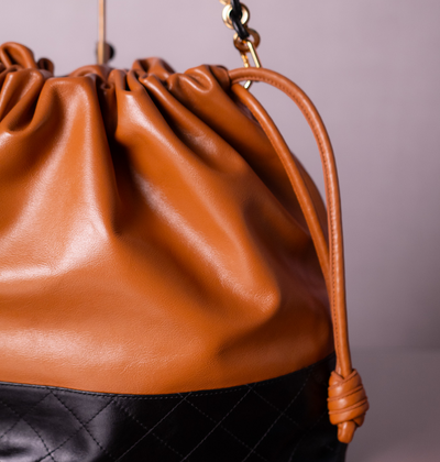 Bolsa Silvia Couro na Cor Caramel com Preto Intenso